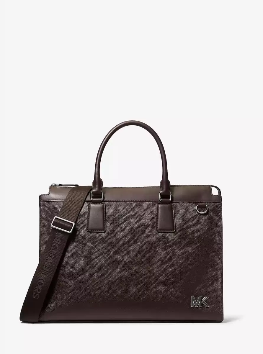 Our Edison briefcase combines a little bit of structure with a whole lot of style. The scratch-resistant crossgrain leather design is sized to hold essentials like your laptop and smartphone, and features an adjustable strap that converts the bag into a crossbody for on-the-go accessorizing. Use it to elevate your workwear wardrobe.