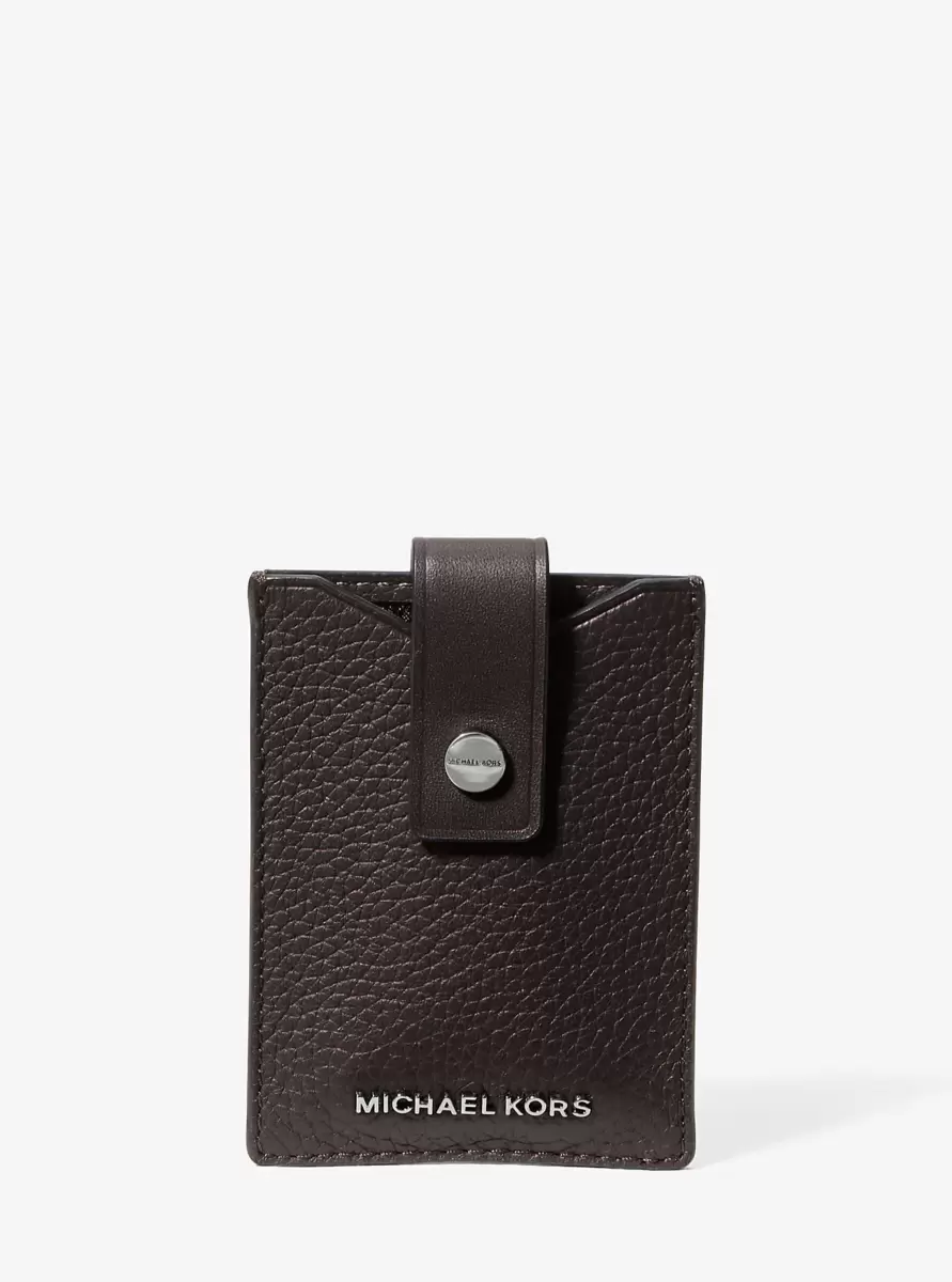 Network in style with the Hudson card holder. Crafted from supple pebbled leather with a snap tab closure, it keeps your business cards crisp and within reach.