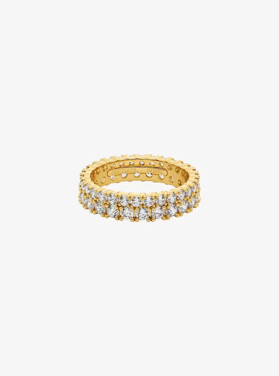 Give your jewelry collection a chic update with this tennis ring, a dazzling piece that’ll quickly become your favorite. Cast in brass, it features two rows of continuous pavé—each set with light-catching cubic zirconia in the same hue. Wear yours solo or stacked with other styles.