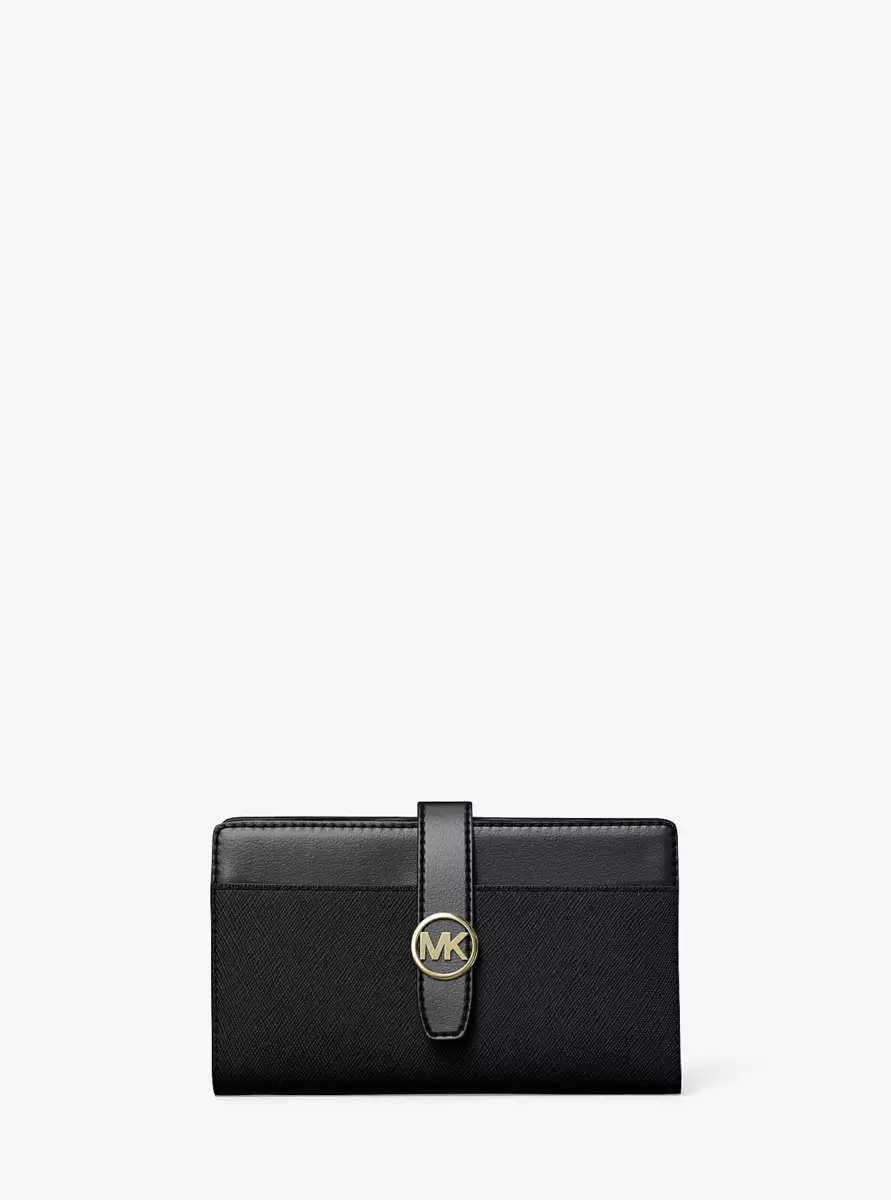 • Interior details: back zip pocket, front slip pocket, 2 card slots, ID window