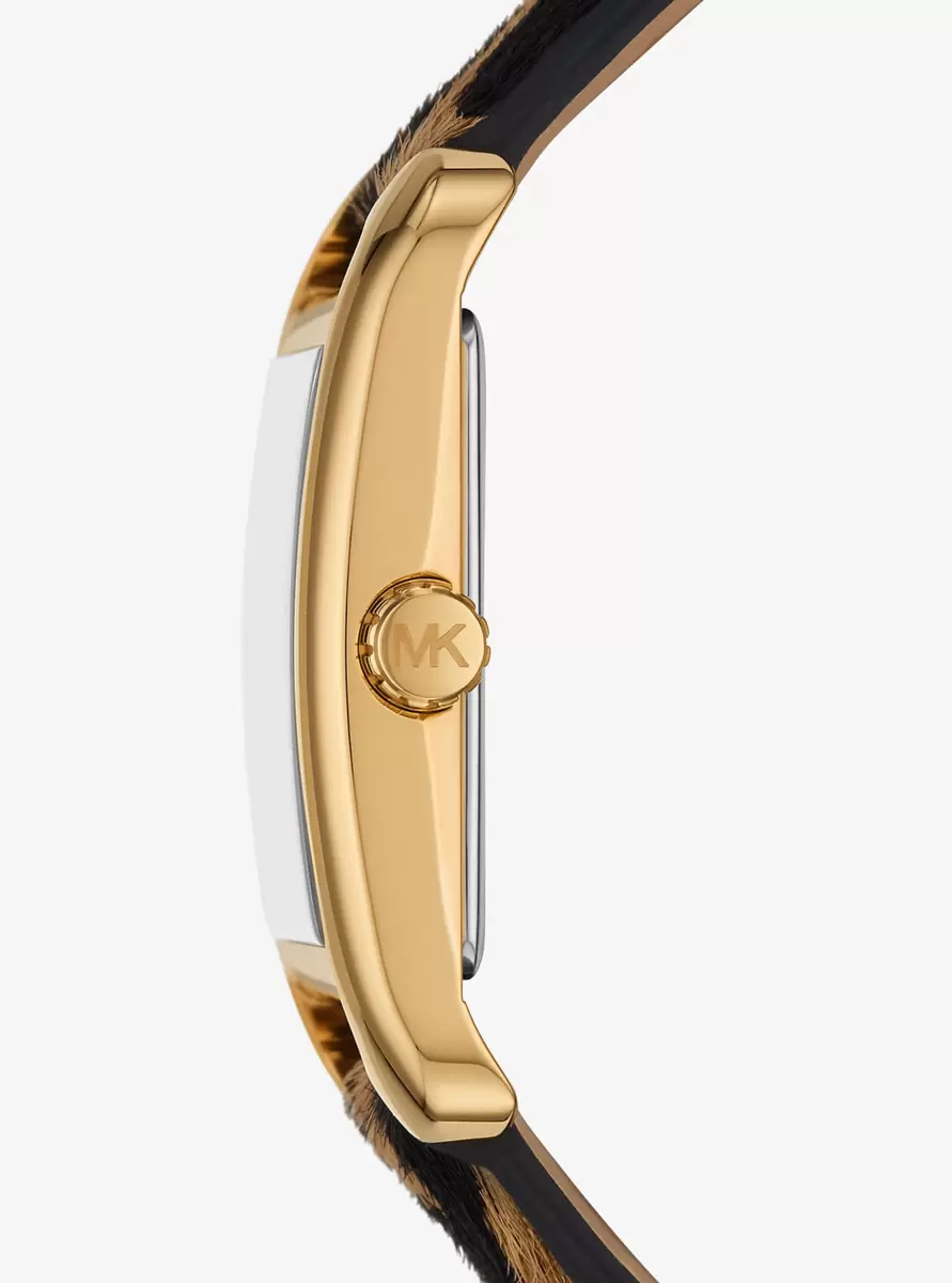 Monroe Gold-Tone and Leopard Print Calf Hair Watch