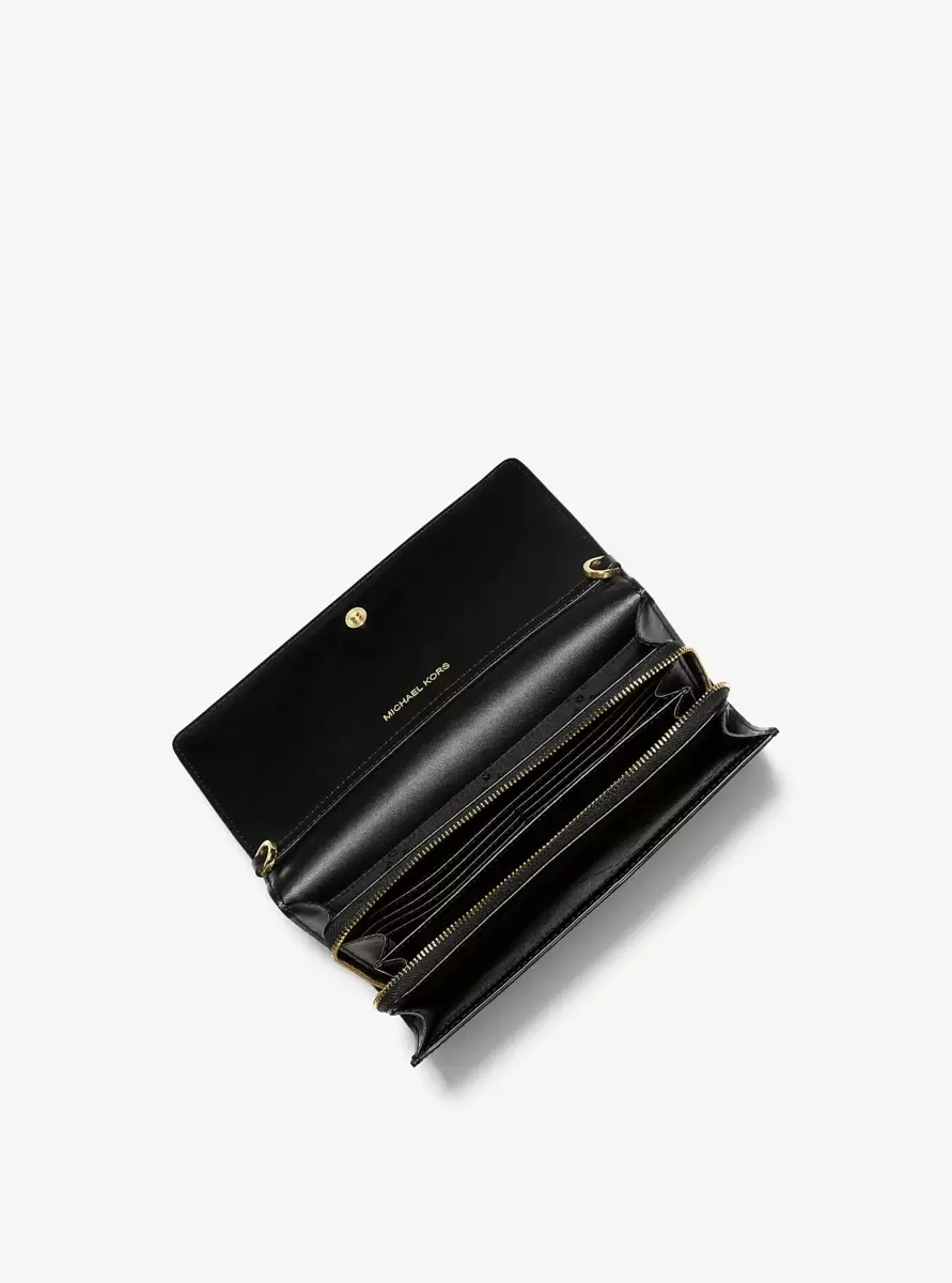 Sporty chic meets modern minimalism on this Jet Set crossbody bag. It opens to reveal a zip compartment with plenty of slip pockets for organizing bills and cards, while the nylon logo strap allows you to convert the leather silhouette into a clutch. Carry yours from day to night.