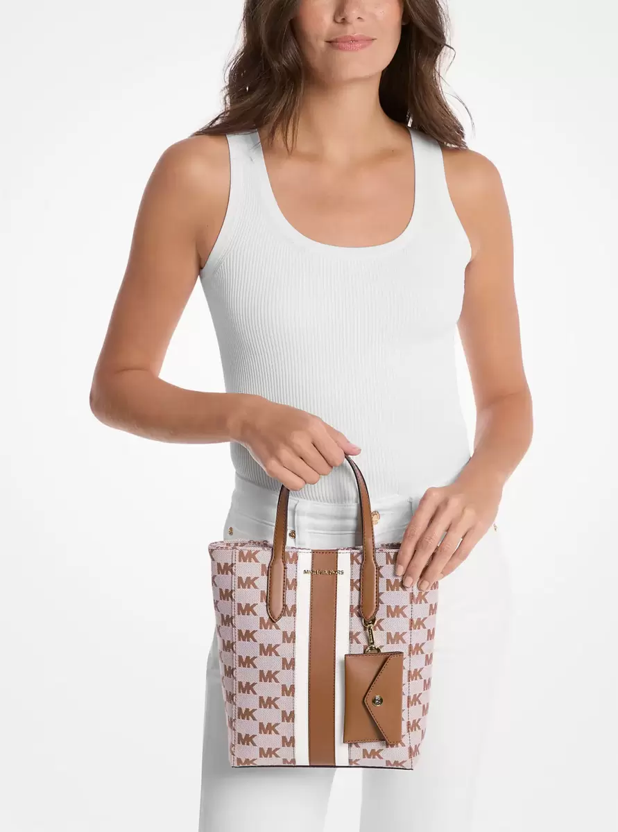 Vincent Small Logo Jacquard Convertible Tote Bag with Card Case