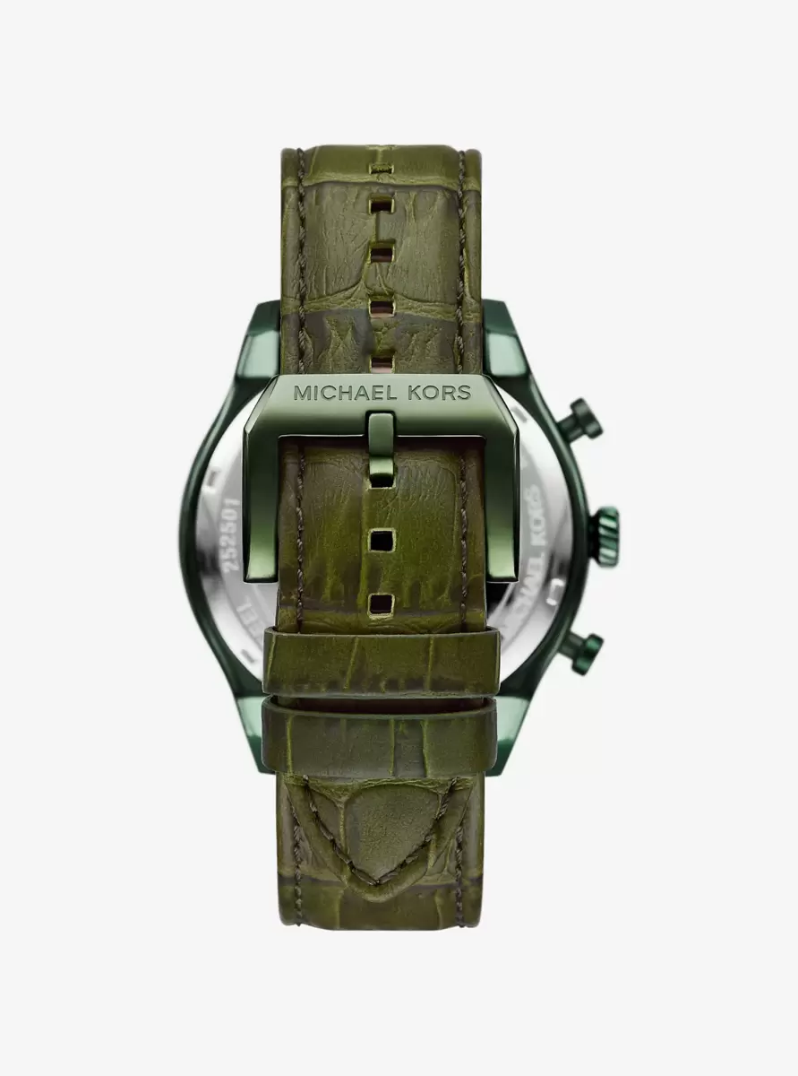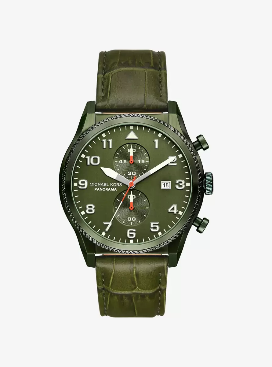 A refined piece for years to come, our Panorama watch is designed with a crocodile-embossed leather strap and topring that’s punctuated by a matching olive-tone face featuring chronograph dials. Count on it for a sophisticated, sporty look any day of the week.