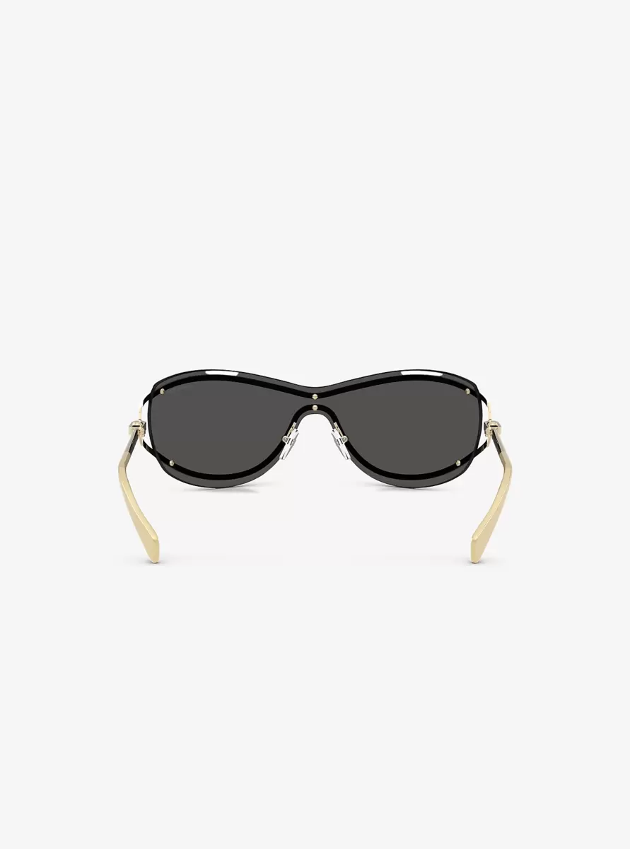 Sporty yet glamorous, our La Praia sunglasses feature shield-style lenses with a metallic frame outline. The slender arms are etched with our logo lettering for a signature finish.