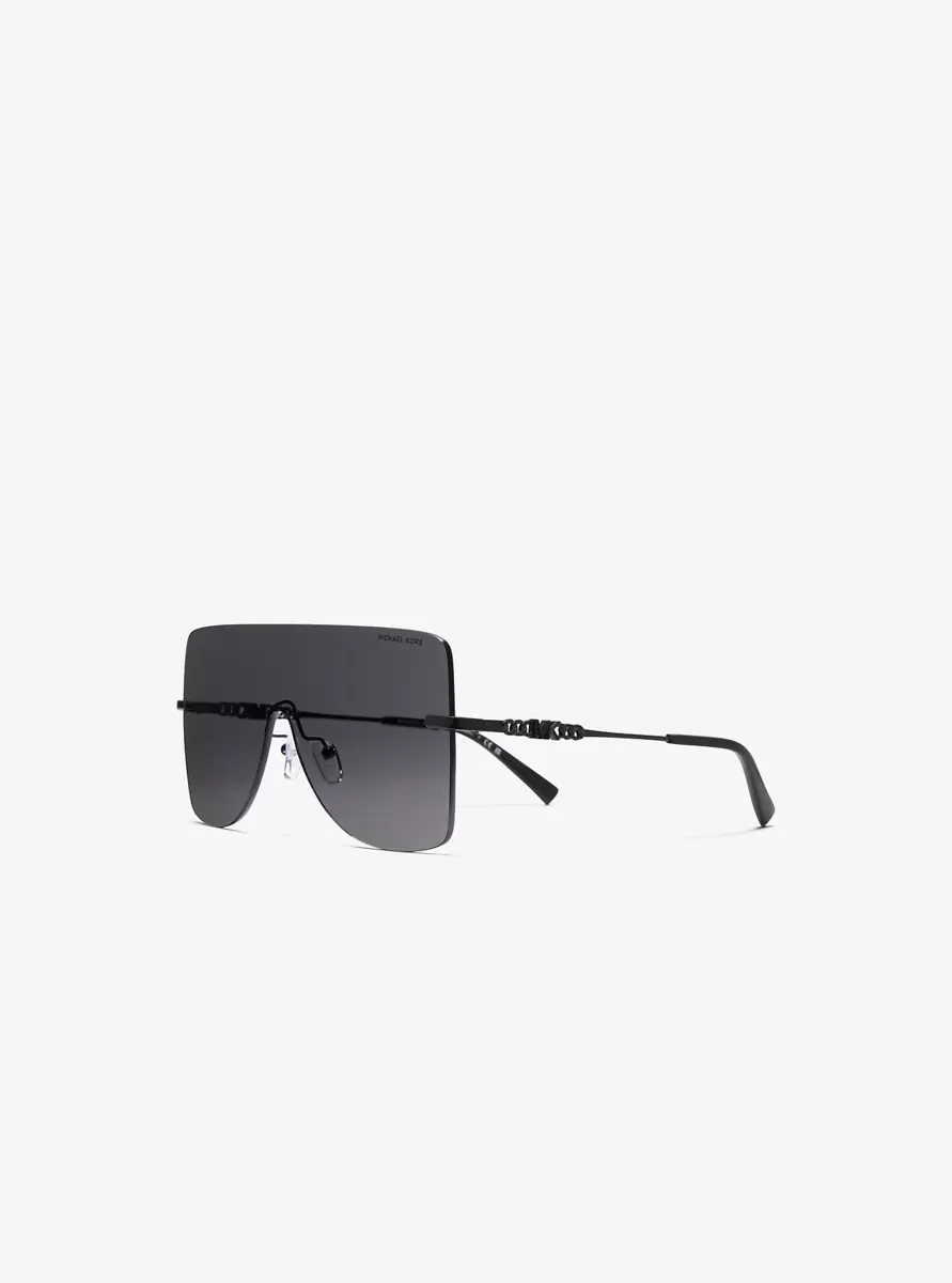 Our London sunglasses epitomize eye-catching style. Featuring oversized frames for an ultra-modern look, these shield-like shades are finished with a subtle “MK” detail on the arms. The lightweight frame feels effortless, but is strong enough to withstand all day wear.