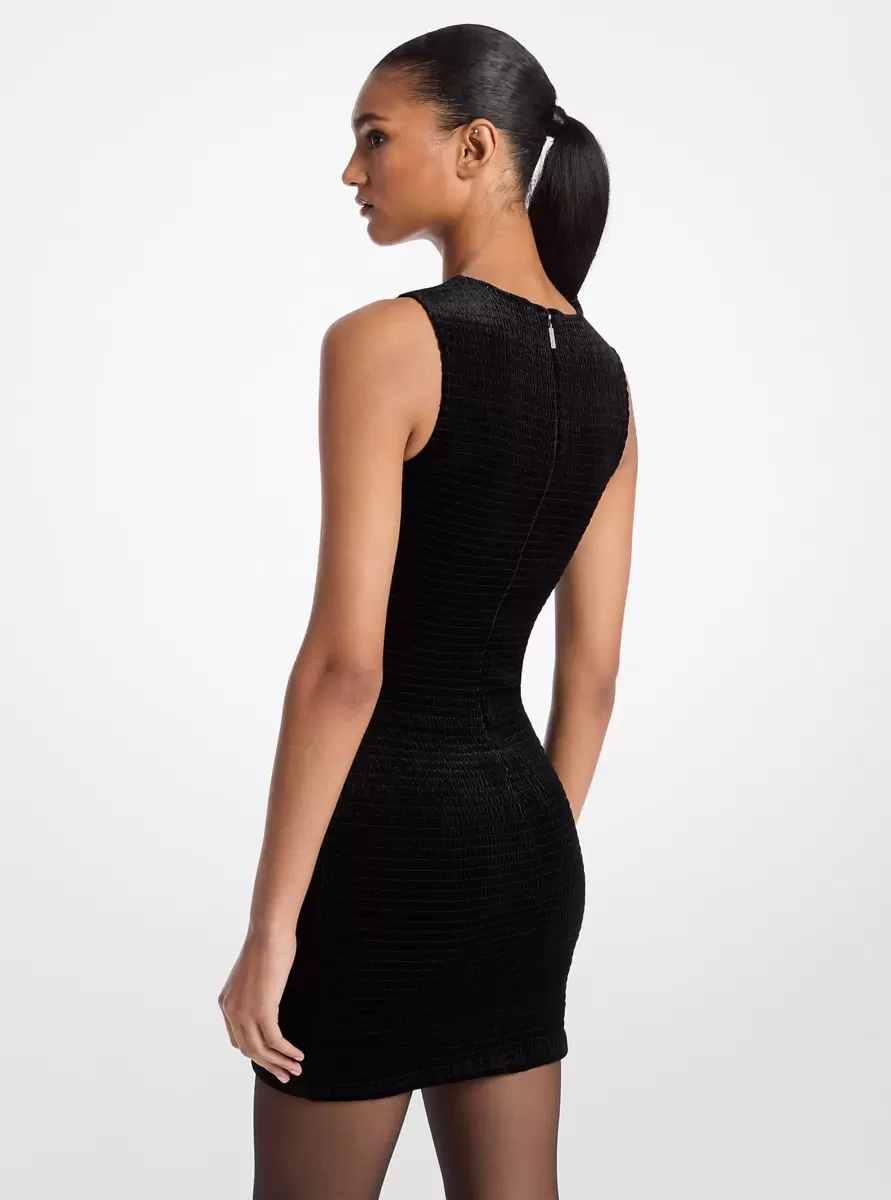 Made from lustrous velvet, this chic little number features allover smocking for a double dose of texture. A minimalist silhouette with figure-flattering stretch, it will be your new go-to LBD. Just add sparkling jewelry for festive occasions.