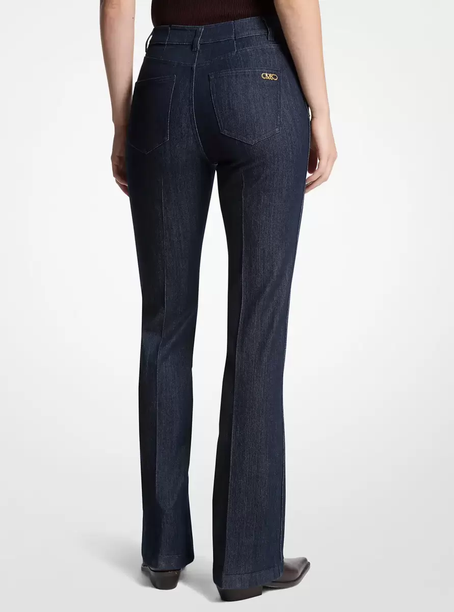 Retro-inspired, indigo denim is making a major comeback this season. Enter this pair of stretch bootcut jeans, cut with a slim leg that gently flares out from the knee to the ankle. Channel a low-key city look with a tank top, leather jacket, matching belt and boots.