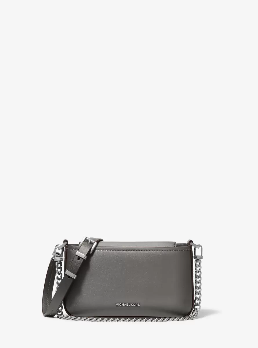 For grab-and-go glamour all day long, look no further than our convertible Bryant shoulder bag. It’s made from burnished leather in a pochette silhouette that’s roomier than it looks. A slim chain handle allows you to carry it in hand while an optional crossbody strap makes it easy to transition from day to dark with ease.