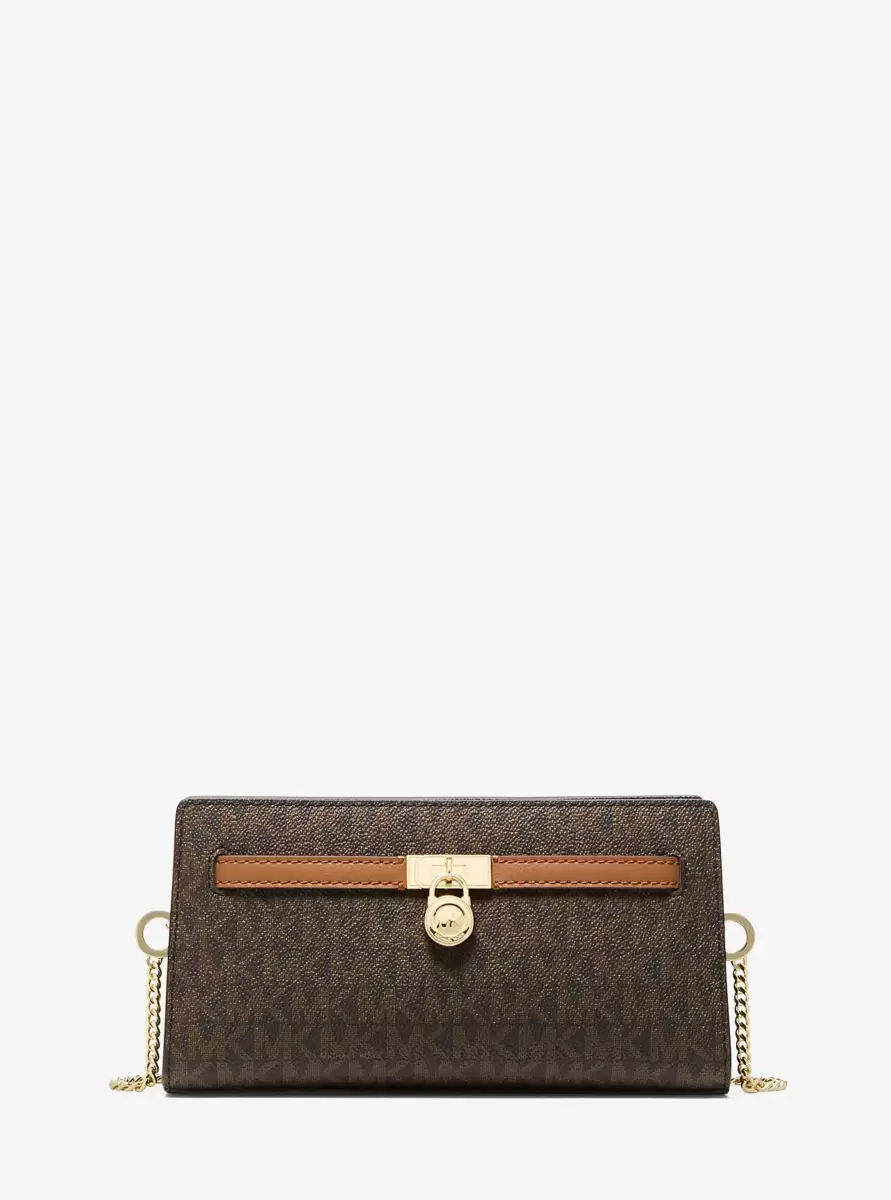A wallet so chic and sophisticated, you’ll want to wear it alone. Inspired by the brand’s most beloved bag, the Hamilton Moderne reimagines classic money pieces with a Signature logo-print finish, gleaming belted padlock and chain-link detail. Wear it by the detachable crossbody strap for on-the-go style or toss it into the matching tote bag as an everyday essential.