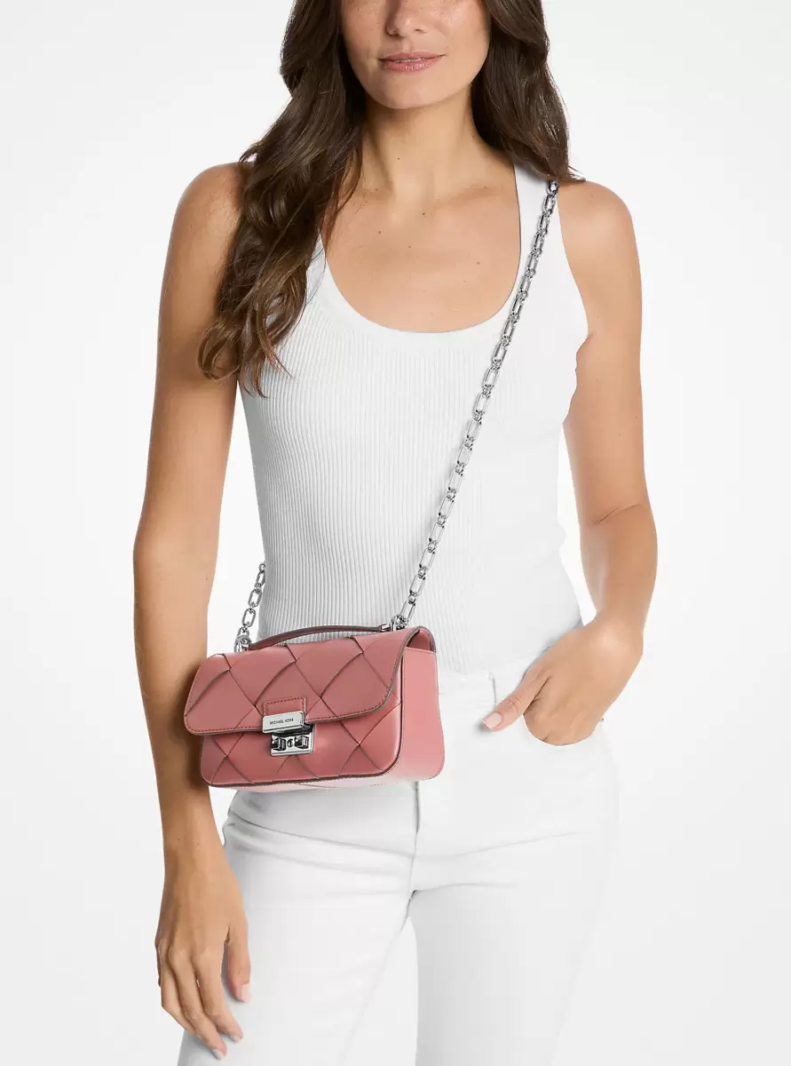 Rendered in woven leather with chain-link hardware, our Tribeca shoulder bag is the definition of downtown chic. The lined interior is perfectly sized to fit your phone and wallet, while the convertible design renders it endlessly portable. Carry it day or night.