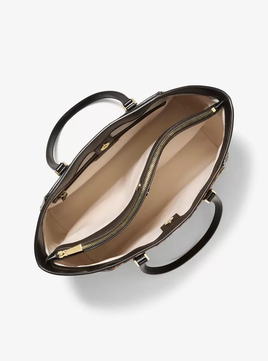 Taryn Large Leopard Print Calf Hair Tote Bag