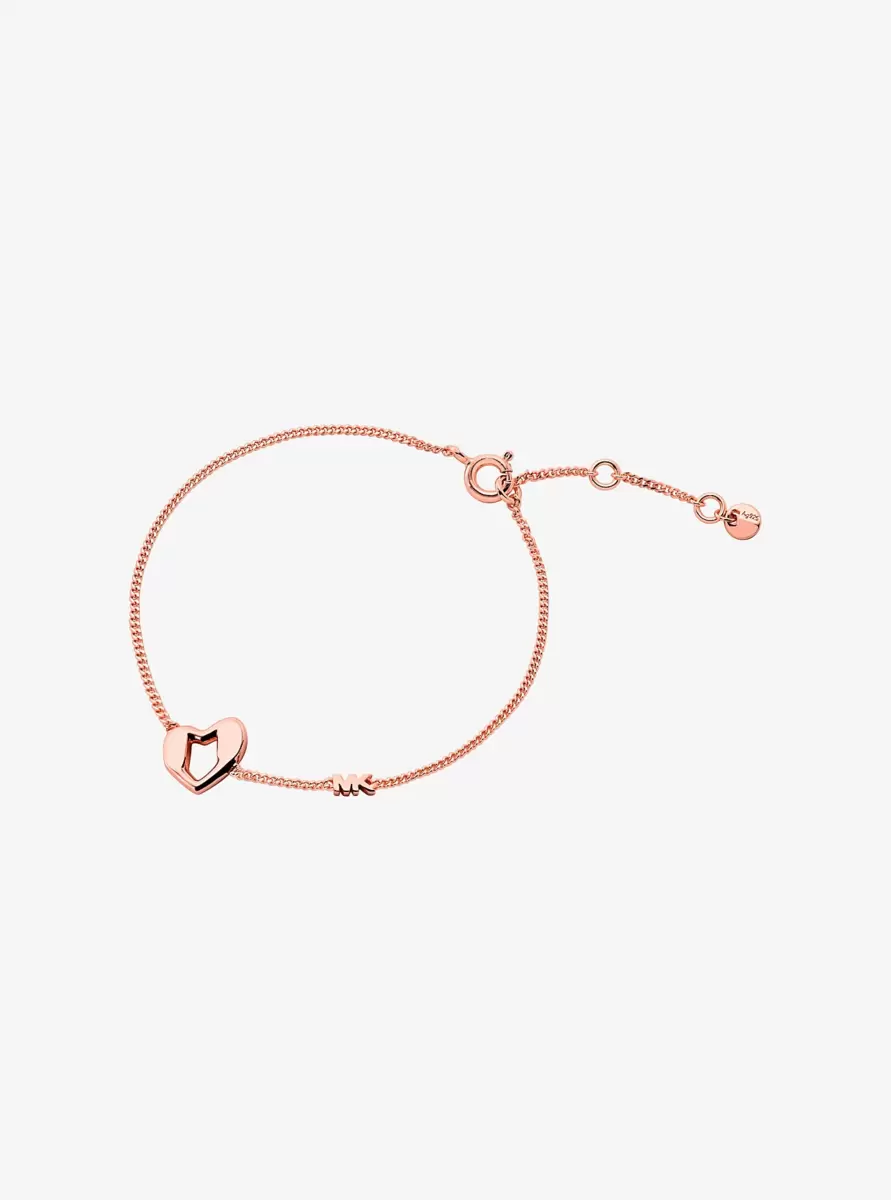 A delicate chain bracelet gets a sweet upgrade with a sculptural heart detail. Cast in precious metal-plated sterling silver, this understated style complete with subtle “MK” initials is the perfect finishing touch to your everyday look.