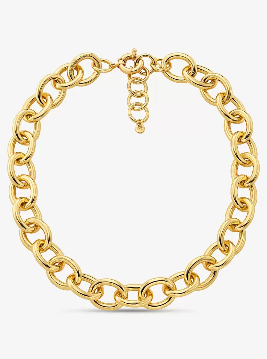Large Precious Metal-Plated Brass Chain Link Necklace