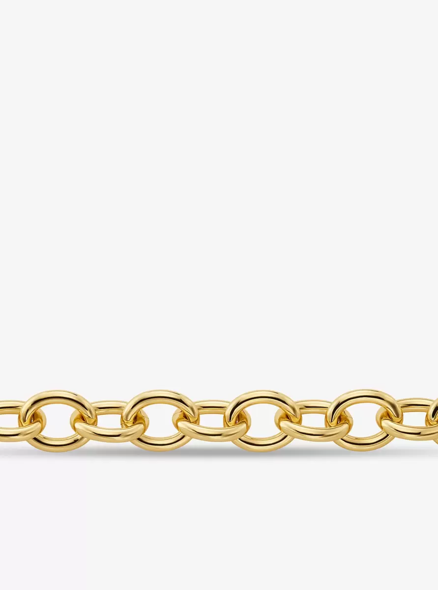 A statement piece you can wear every day, this necklace is crafted from brass and then plated with precious metal. The large, polished links are sure to turn heads when worn under a collared shirt or to accent a bare neckline.