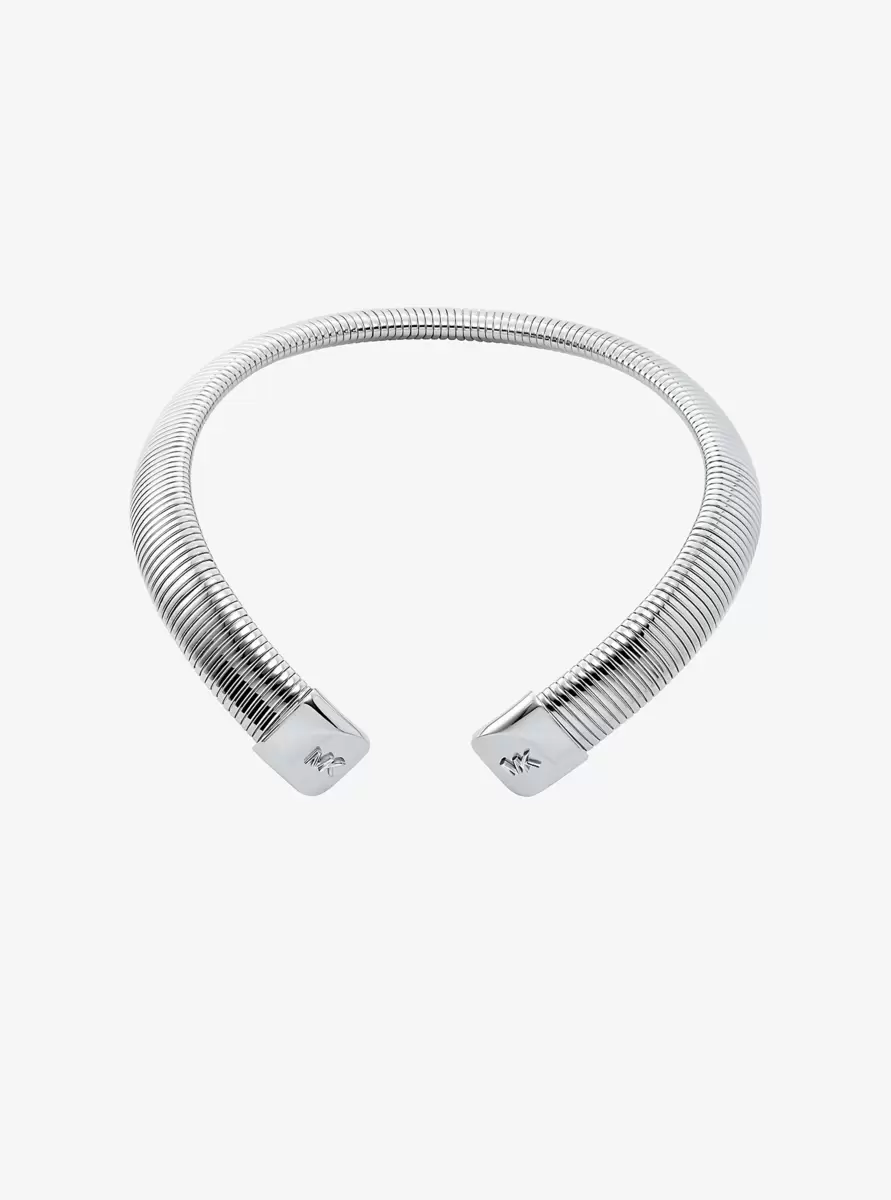 Go for bold with this statement-making collar necklace. The glistening chain will stand out against any look—from the perfect white tee toa timeless black dress.