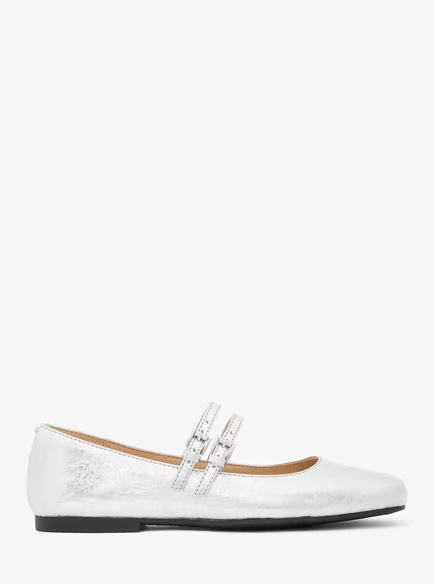 Meet Matilda: an everyday-chic staple that will transcend seasons. Crafted from crackled metallic leather, this pair features a modern double-strap fastening across the foot. Juxtapose its feminine vibe with rugged-looking denim.