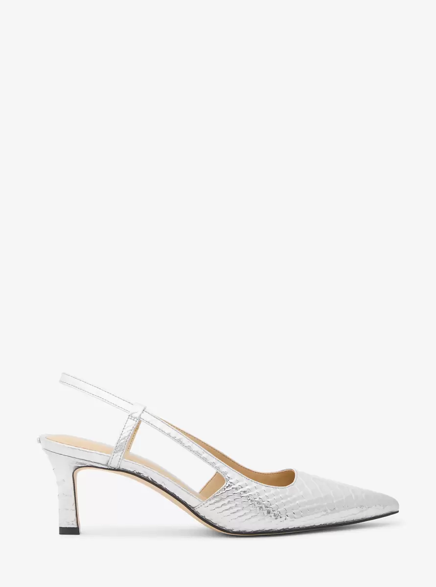 Hit the events circuit in style with our RSVP-ready Alora pumps. A metallic, snake-embossed vamp will catch the eye at weddings, cocktail soireés and more, while the mid-heel and supportive slingback strap will keep you comfortable on the dance floor all night long.