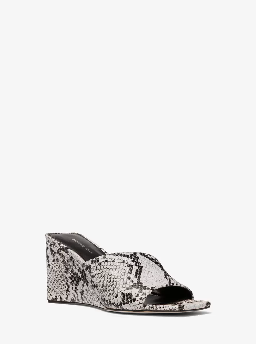 Merriam Snake Embossed Leather Wedge Sandal