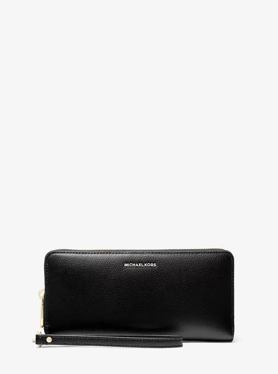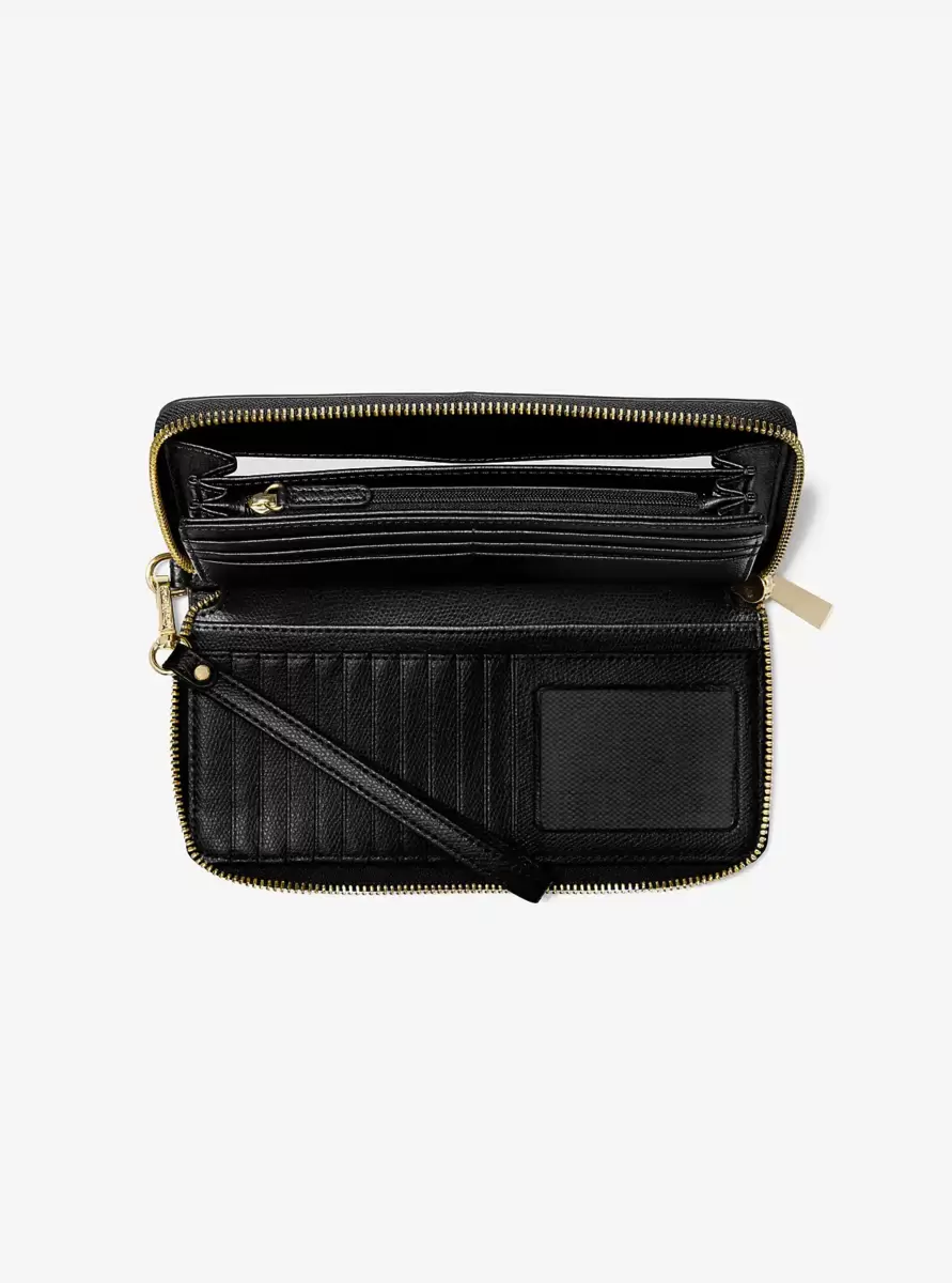 Crafted from textured leather, this sleek wallet is the perfect all-in-one accessory. It features a dedicated pocket for your phone and a wealth of card slots for easy organization. A must-have when traveling or commuting, it can easily be tucked into your carryall for everyday functionality.