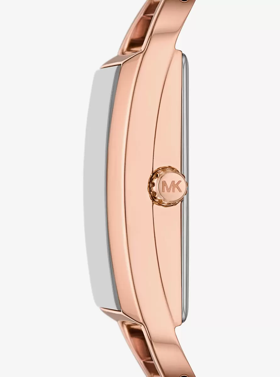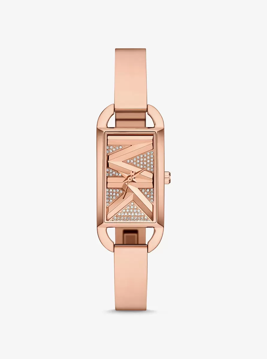 Updated in a polished bangle design, the Empire watch adds sleek city glamour to your everyday stack. The stainless-steel construction promises timeless durability, while the logo-etched face is studded with pavé crystals for added shine.